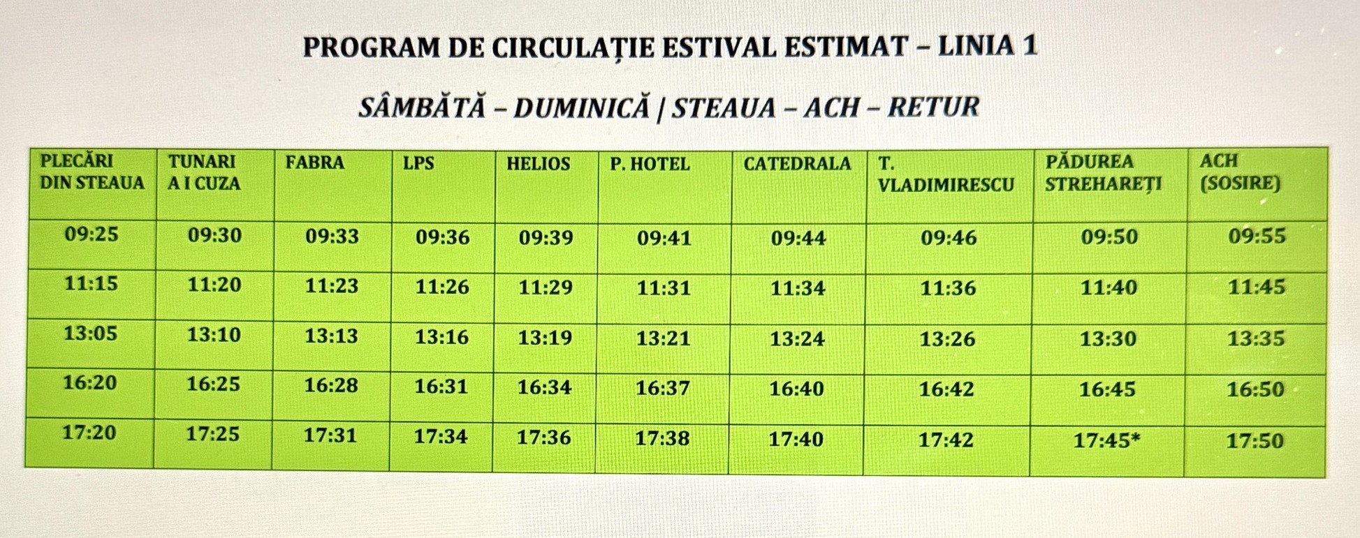 Vă prezentăm programul de circulație pentru lunile iunie, iulie și august: