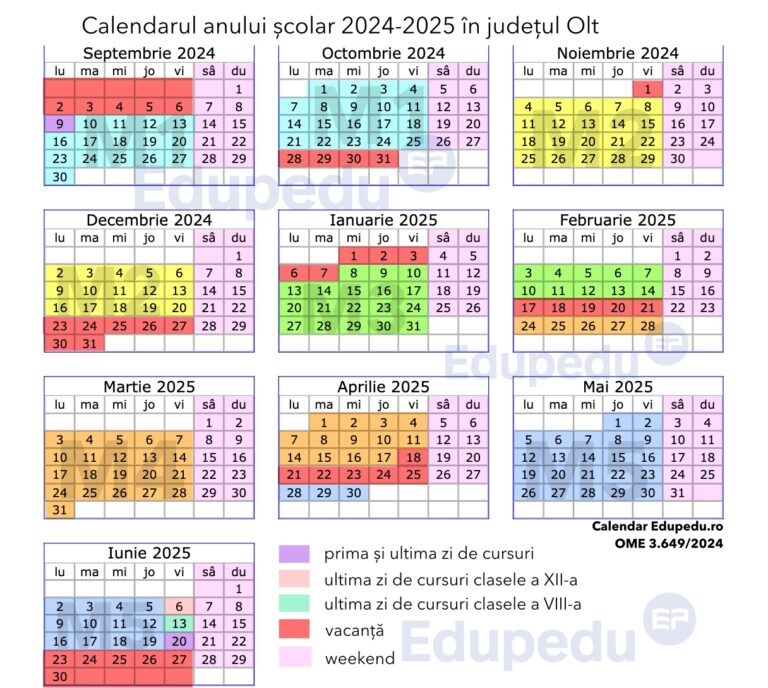 Vacanţa elevilor se va încheia pe 8 septembrie, în ziua celui de-al doilea tur al alegerilor prezidenţiale. Ministerul Educaţiei a făcut publice structurile anului şcolar 2024-2025 pentru toate judeţule în parte. Anul școlar amintit are o durată de 36 de săptămâni de cursuri, organizat pe cinci module, cu cinci vacanţe.