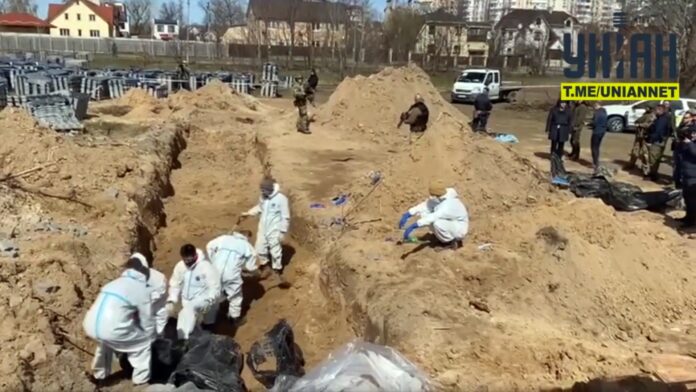 În cea de-a a 50-a zi de război în Ucraina au fost găsite, la Bucea, peste 70 de cadavre, mai precis, 73, într-o groapă comună.