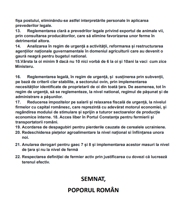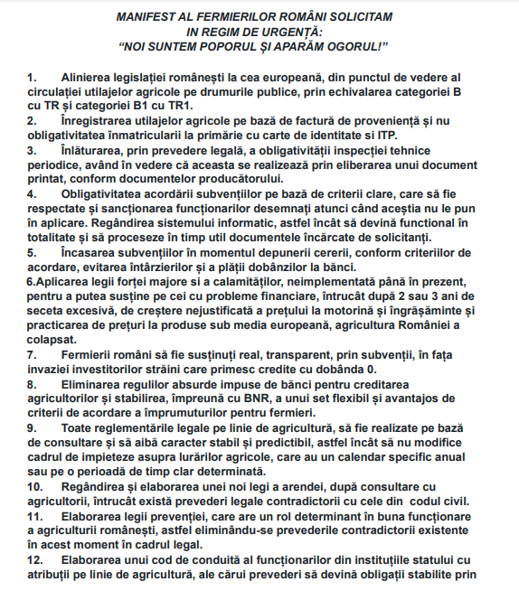Fermierii şi transportatorii români protestează de trei zile şi blochează mai multe drumuri naționale, intenționând să se deplaseze către Bucureşti. Guvernul, însă, în loc să meargă printre oameni, să le afle nemulţumirile, creează lanţuri de blocare. Atât fermierii, cât şi transportatorii vor să atragă atenția asupra problemelor pe care le întâmpină, în special nemulțumiri legate de creșterea costurilor asigurărilor RCA și solicitarea de fonduri europene.